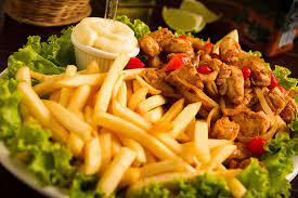 Porção de Isca de Frango Acebolado e Batata Frita